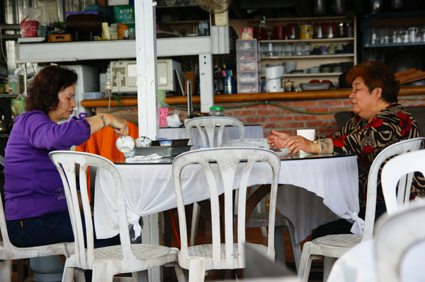 老人家悠閒的泡茶聊天