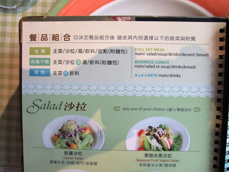 到了二樓就定位之後,服務生就送上了菜單