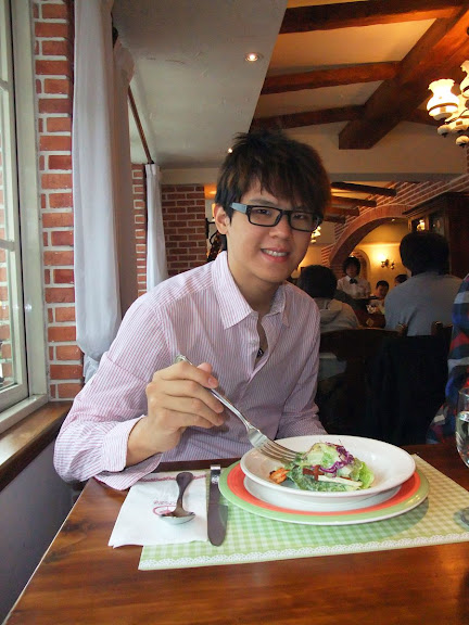 然後正當我在拍這些照片的時候,我弟已經把他的主餐吃掉三分之一了
