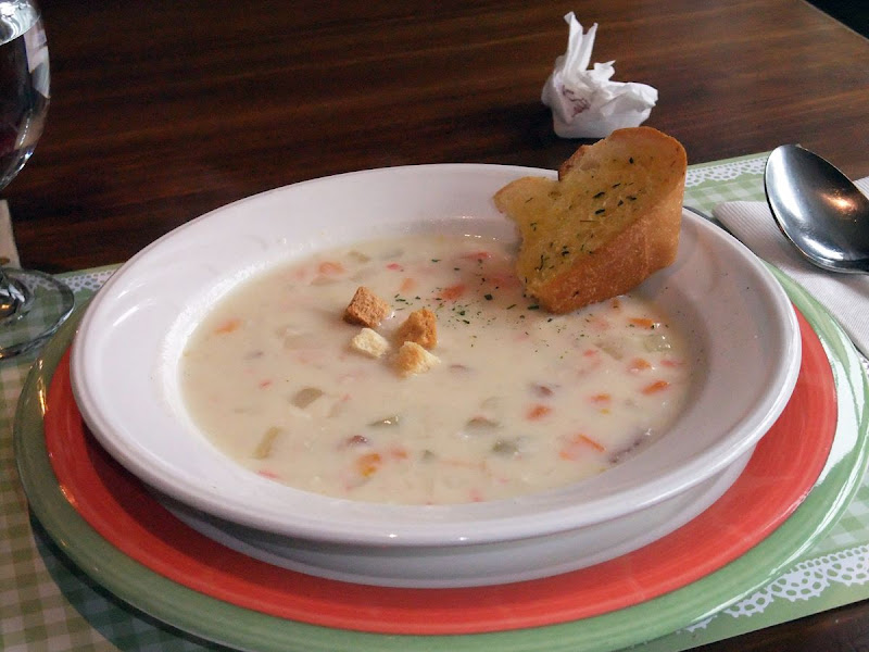 好喝好喝的奶油海鮮湯,跟亂入的大蒜麵包XD